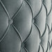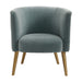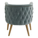 This Stylish Barrel Chair Features A Plush Diamond Button Tufted Surround In A Luxurious Slate Blue Velvet Lined With Antique Brass Nail Head Trim, On Metal Tapered Dowel Legs Finished In Brushed Brass.
