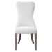 Perfect For A French Country Or Farmhouse Setting, This Armless Chair Features A Feminine Silhouette Finished In A Stone White Slubbed Performance Fabric With Wire-brushed Solid Oak Legs Finished In Dark Walnut With A Light Gray Wash. Seat Height Is 20".