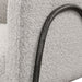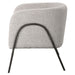 Inspired By Scandinavian Designs, This Barrel Back Style Chair Showcases Elegant Curved Lines With A Chiseled Iron Frame In A Natural Aged Black Iron Finish. A Casual Ivory And Warm Gray Boucle Fabric Accents This Modern Look.