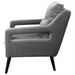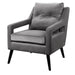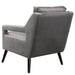 A Nod To Classic Scandinavian Style, This Open Arm Style Chair Is Tailored In A Luxurious Smoke Gray Velvet With A Button Tufted Back Cushion And Matte Black Finished Wood Legs.