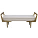 A Bench For Extra Seating With A Mid-century Twist In Its Modern Birch Wood Frame Lightly Finished In A Smooth Oak Finish, With A Tufted Bench Seat In A Woven Beige Fabric.