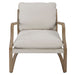 Modern Yet Casual, This Stylish Accent Chair Boasts A Sculptural Open Frame Made From Solid Oak In A Natural Wire Brush Ceruse Finish. Each Plush Cushion Is Upholstered In A Natural Linen Toned Fabric, In A Sling Seat Perfect For Lounging.