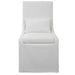 Simplistic In Form, This Sophisticated Armless Chair Features A Heavily Textured Polyester Slipcover In Crisp White With A Plush Cushion Seat And Kidney Pillow For Extra Comfort. Has Added Performance Treatment To Resist Soiling And Stains.