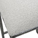 With Clean Contemporary Lines, This Open Frame Design Features A Textured Cast Iron Base In A Natural Distressed Charcoal Finish. Paired With A Tight Upholstered Seat In A Casual Ivory And Light Gray Boucle Fabric.