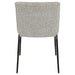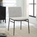 Inspired By Contemporary Designs, The Jacobsen Dining Chair Showcases Curved Lines With A Chiseled Iron Frame In A Natural Aged Black Iron Finish. A Casual Ivory And Warm Gray Boucle Fabric Accents This Modern Look.