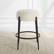 This Plush Counter Stool Is Covered In A Luxurious White Faux Shearling, Suspended Within Satin Black Finished Metal Legs.