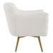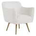 Nestle Into The Surrounding Comfort Of The Oasis Swivel Chair. Gently Sloped Curves Are Accentuated With A Welt Trim Of An Ultra Plush White Faux Sheepskin Fabric. Complete With A Swivel Return Atop Tapered Stainless Steel Legs Plated In Brushed Brass.