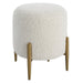 This Plush Ottoman Is Covered In A Luxurious White Faux Shearling, Suspended Within Brushed Brass Finished Metal Legs. Versatile And Stylish, This Piece Can Be Used As A Seat Or Footrest, Grouped Together Or As A Singular Accent Piece.