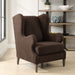 A Classic Wingback Chair With A Modern Twist. Dramatic Curved Lines Are Accentuated By The Rich Chocolate Faux Shearling. Resting On Solid Wood Tapered Legs Finished In Weathered Light Walnut.