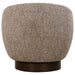 Embodying Richness Of Earth's Warm Tones, The Dunes Barrel Back Swivel Chair Features A Woven Fabric In Mottled Tones Of White, Cocoa, And Rust. Resting On A Plinth Swivel Base In Dark Walnut Stained Oak.