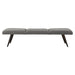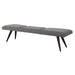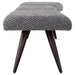 A Classic Bowtie Shape Is Accentuated By The Directional Stripes Of The Polyester Boucle Fabric In Charcoal And Slate Gray Tones. Paired With Tapered Metal Legs In Bronze.