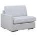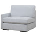 A Modern Silhouette That Offers Style And A Comfortable Place To Curl Up. The Refuge Modular Collection Is Crafted With Premium, High Durability Foam Cores And Synthetic Down Wrap. Featuring The Patented RidgEraser Technology To Ensure Consistent Comfort Between Cushions. Upholstered In A Finely Textured Light Blue Polyester Fabric.