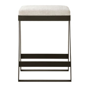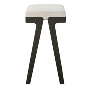 The Modern Hover Counter Stool Is Streamlined With An Aged Black Curved Iron Base And Cushioned Seat. Upholstered In An Ivory Chenille Boucle Performance Fabric.