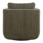 Curves Abound Creating Style And Ease, Featuring A Rounded Frame That Cradles The Base And Rests On A Hidden Swivel. Fully Upholstered In A Rich Textured Chenille In Herb.