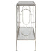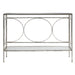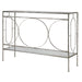 Refined, Thinly Shaped Forged Iron Is Finished In Heavily Distressed Antique Silver. Top Shelf Is Mirrored With A Clear Tempered Glass Gallery Shelf.