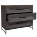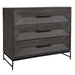 Displaying Balanced Elegance Through Its Three Symmetric Drawers This Chest Is Crafted From Rich Acacia Veneer In Dark Walnut Stain Washed With A Light Gray Glaze. Beautifully Accented By Sturdy Aged Iron Legs And Matching Hardware Pulls.