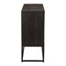 Intricately Pieced With A Modern 3-dimensional Book Matched Chevron Pattern In Aged Ebony Finished Fir Wood, Contrasting With A Naturally Finished Rustic Top. Supported By An Iron Base And Accented With Thick Iron Bar Hardware Finished In Black Steel. Has One Fixed Interior Shelf.