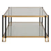 Featuring A Clean Lined Solid Iron Frame, This Contemporary Coffee Table Is Finished In A Two-toned Matte Black And Gold Leaf. Has Two Tempered Glass Shelves.