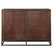 Featuring Abstract Geometric Marquetry Doors In Reclaimed Fir Wood, Sun Faded And Washed In A Walnut Stain, Atop A Forged Iron Base Finished In Aged Gunmetal. Solid Wood Will Continue To Move With Temperature And Humidity Changes, Which Can Result In Cracks And Uneven Surfaces, Adding To Its Authenticity And Character.