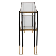 Featuring A Clean Lined Solid Iron Frame, This Contemporary Console Is Finished In A Two-toned Matte Black And Gold Leaf. Has Two Tempered Glass Shelves.