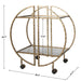 Featuring Hand Forged Iron With Hammered Texturing In A Heavily Antique Gold Finish, This Versatile Bar Cart Reaches Across Many Design Styles. Includes Two Clear Tempered Glass Shelves, Complete With Rolling Casters.