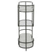 Inspired By A Mix Of Classic Mod Design And Contemporary Styling, This Multifunctional Piece Can Serve As A Bar, Server, Or Console Table. The Curved Iron Frame Is Finished In Satin Black, Accented By White Marble And Tempered Glass Shelving. Because Of The Natural Characteristics Of Marble, Each Piece Will Have Unique Veining Patterns.