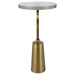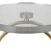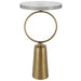 Modern And Simplistic, This Accent Table Features A Beautiful Steel Ring And Base Finished In Rich Antique Brass And Accented By A Thick Seeded Glass Top.