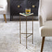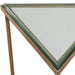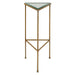 This Quirky Triangular Drink Table Features A Sturdy Iron Frame, Finished In A Sophisticated Brushed Gold With A Thick Glass Top. Perfect For Displaying A Cocktail Or Your Favorite Book.