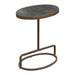 Showcasing A Clean-lined Design, This Accent Table Features An Inset Oval-shaped Polished Bluestone Top With Natural Characteristics Of White Marbling And Veining Throughout, Supported With A Hand Forged Iron Base Finished In Heavily Antiqued Brushed Gold.