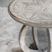 Soft, Aged White Finish On Solid Mango Wood Circle Motif Base, With Rub-through Distressing On The Mindi Veneer Inlay Top.
