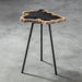 Featuring A Striking Cross Section Of Natural Petrified Wood With Unique Graining Details, Paired With Aged Black Finished Iron Legs. With This Authentic Material, Color Variations Can Range From Mostly Black To Completely Natural Along With A Size Range Of 10-17" Diameter.