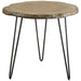 Influenced By Modern Lodge Style, This Side Table Features A Cross Cut Veneered Wood Slab Top With Live Edge Details Paired With A Simple Iron Hairpin Base Finished In Aged Black.