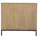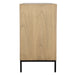Defined By Mindi Wood Grain Placed In A Geometric Pattern Aerie Adds Character To Any Room. The Wood Is Naturally Finished Showing Off Its Rich Grain Structure Accentuated By Matte Black Metal Legs And Matching Door Pulls. Adjustable Shelves Add To The Functionality Of This Versatile Cabinet.