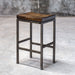 Constructed Of Solid Hardwood, Finished In A Lightly Burnished Dark Walnut Revealing Warm Honey Undertones, Set Atop An Industrial Iron Base Finished In A Lightly Brushed Steel.