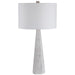 This Table Lamp Showcases A Tapered Base In A Concrete Look With Crisp Edges And Porous Texture Finished In Off-white, Light Gray, And Taupe Tones, Paired With Brushed Nickel Accents. The Round Hardback Drum Shade Is A White Linen Fabric.