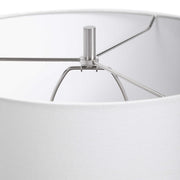 A Contemporary Take On Classic Blue And White Ceramics, This Table Lamp Features A Unique Sculpted Design With A Hand Applied Light Cobalt Blue Drip Glaze, Paired With Brushed Nickel Plated Details. The Lamp Is Paired With A Crisp White Hardback Drum Shade.