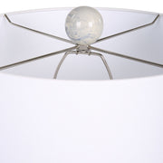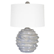 A Contemporary Take On Classic Blue And White Ceramics, This Ceramic Lamp Features A Unique Sculpted Design With A Hand Applied Light Cobalt Blue Drip Glaze And A Oversized Matching Ceramic Finial, Paired With Brushed Nickel Plated Details. The Table Lamp Is Paired With A Crisp White Hardback Drum Shade.
