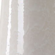 Simple Yet Versatile, This Ceramic Table Lamp Features A Cream-ivory Drip Glaze With Subtle Texture, Accented With Matte Black Details. The Lamp Is Paired With A Tapered Round Hardback Shade In A Crisp White Linen Fabric.