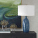 Where Coastal Charm Meets Refined Elegance, Featuring A Heavily Textured Ceramic Base In A Rich Blue Glaze And Enhanced With Plated Antique Brass Finishes. The Round Hardback Shade Is Covered In A White Linen Fabric. Due To The Nature Of Fired Glazes On Ceramic Lamps, Finishes Will Vary Slightly.