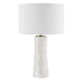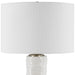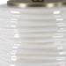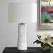 The Pavlova Table Lamp Features A Porcelain Base, Shaped With Natural Fluidity, Is Highlighted By A Heavy Ribbed Texture, And Finished In A Lustrous Glossy White Glaze. Brushed Antique Brass Plated Accents Completes The Piece. The Round Hardback Drum Shade Is A Casual White Linen Fabric.