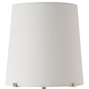 The Sepia Buffet Lamp Showcases A Brown Marble Cylinder Base Accented With Plated Antique Brass Details. The Tapered Round Hardback Shade Is A Crisp White Linen Fabric, Held In Place By Brass Plated Steel Arms.
