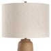 The Ayda Table Lamp Features A Distressed Ceramic Base With A Warm Terracotta Finish. Its Organic Texture Is Complemented By Plated Antique Brass Details. The Round Hardback Drum Shade Is A Natural Linen Fabric With Light Slubbing