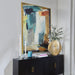 Shades Of Ocean Green, Tan And Golden Rod Yellow Make Up This Abstract Giclee On Canvas. Complimented By A Solid Wood Gallery Frame With Gold Finish, This Piece May Be Hung Horizontal Or Vertical. Each Canvas Is Proudly Handcrafted And Printed In The USA. Artwork By Kelsey Hochstatter.