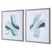 These Abstract Watercolor Style Prints Showcase Shades Of Teal, Light Green, And Aqua And Are Accented By Double White Matting And A Driftwood Gray Frame. Each Print Is Placed Under Glass. Artwork By Grace Popp.