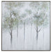 Hand Painted Forest Scene On Canvas Showcases A Watercolor Style With Soft Sage Green, Yellow And Gray Tones And A Silver Gallery Frame. Due To The Handcrafted Nature Of This Artwork, Each Piece May Have Subtle Differences.