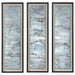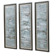 Reminiscent Of Ocean Water, These Metal Sheets Are Hand Painted In Aqua, Gray, Silver And Gold Hues. The Raw Metal Edge Is Softened By Natural Beige Linen Backing And A Matte Black Shadow Box Style Frame Under Glass. Due To The Handcrafted Nature Of This Artwork, Each Piece May Have Subtle Differences. Each Piece May Be Hung Horizontal Or Vertical.