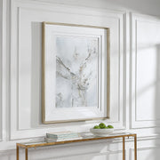 Create An Elegant Statement With This Feminine Abstract Print. The Neutral Artwork Features Shades Of Light Gray, White, And Gold Leaf. Triple White Matting And A Warm Silver Leaf Frame Complete This Sophisticated Piece. Print Is Placed Under Glass. Artwork By Jennifer Gardner.