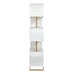 This Symmetrical Etagere Creates A Bold Contrast That Enhances Its Contemporary Style. It Features Mahogany Veneer Shelves In Modern White, Complemented By Antique Brass Posts.