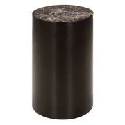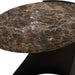 This Side Table Features A Sleek Black Metal Base With A Distinctive Sculptural Form That Enhances Both Visual Interest And Stability. The Tabletop Is Crafted From Chocolate Brown Marble, Adorned With Subtle Neutral Veining That Adds An Elegant Touch. Due To The Nature Of Marble, Each Piece Will Have Unique Coloration And Veining Pattern.