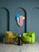 Inspired by Memphis style and the 1980s' comedy movie featuring Danny D. and the divine Miss M. Form is taken over function with geometric ornamentality and exaggerated color use. Recycled steel wall sculptures in multicolor and a more "now" blend of black, white and metallics.